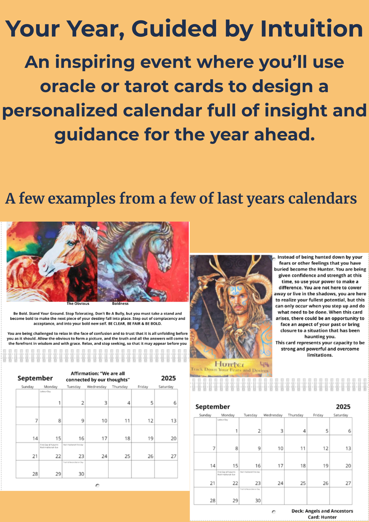 Join me for an inspiring and grounding event where you’ll create your own 2026 Intuitive Calendar, a tool to support you with clarity and wisdom all year long.